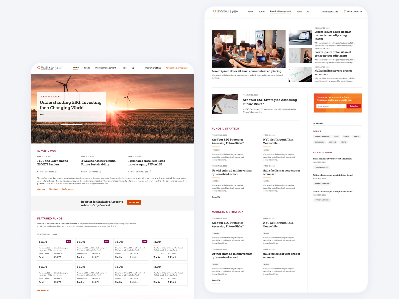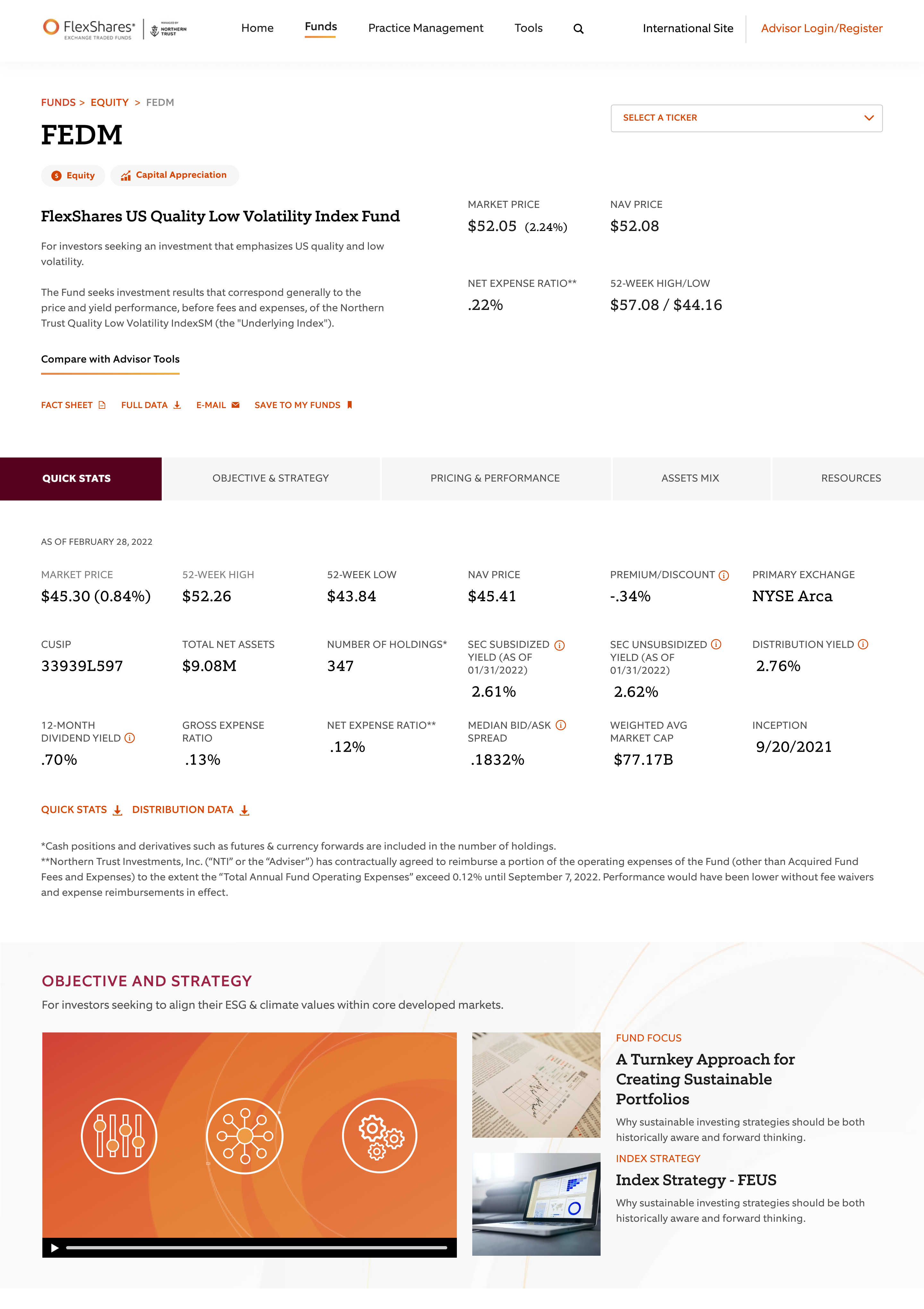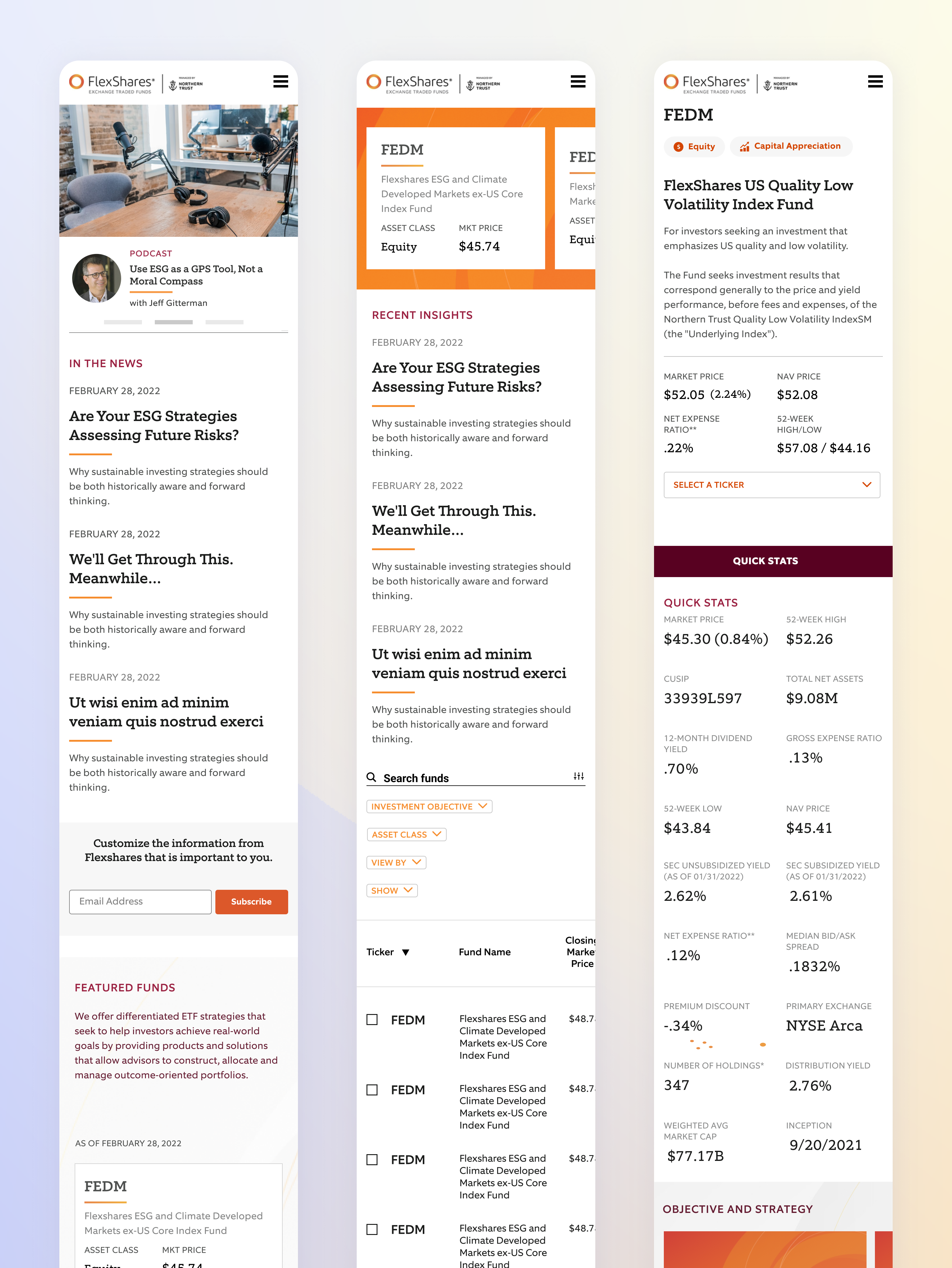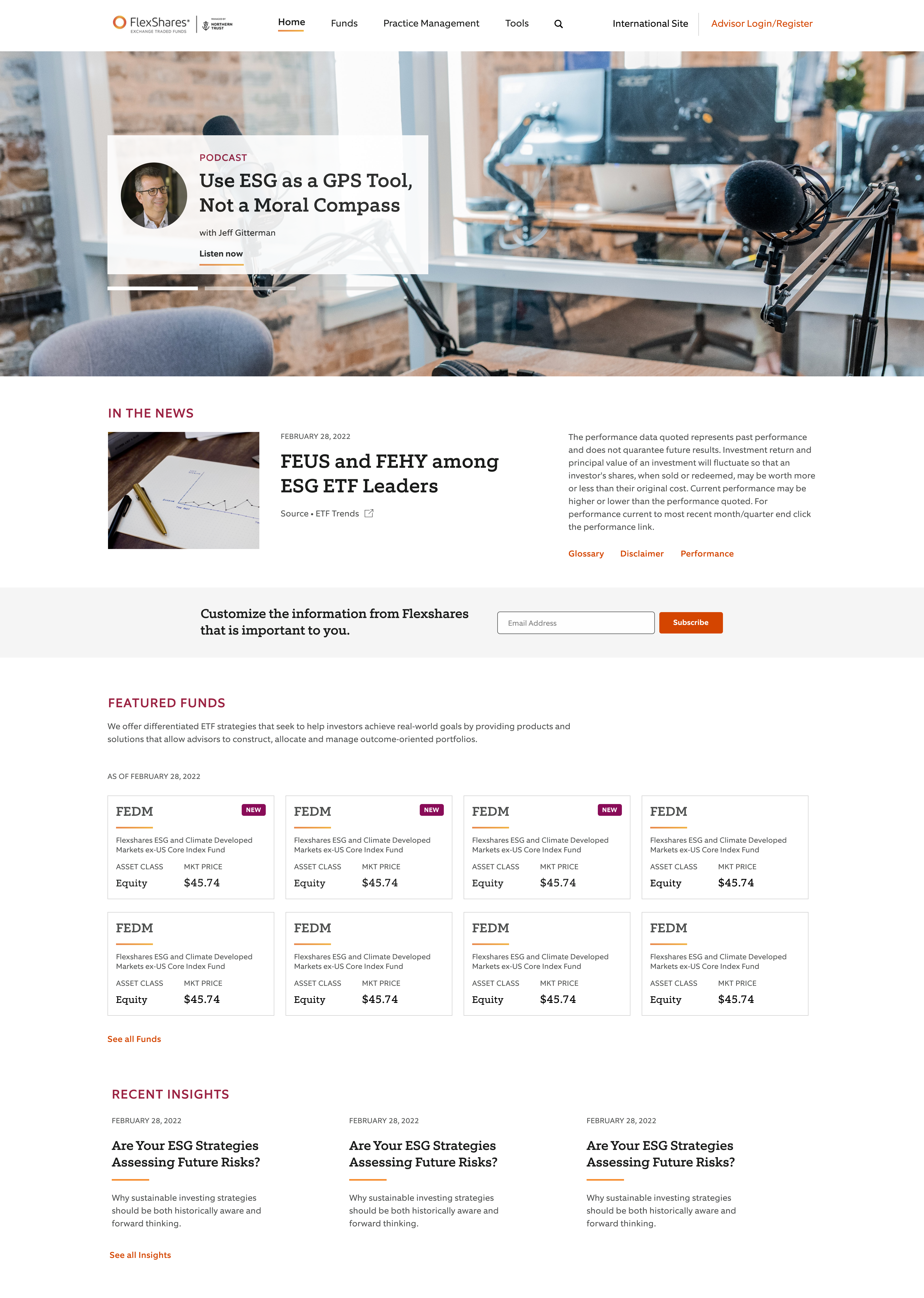 • Thorough analysis of existing website for Flexshares, a financial platform specializing in selling funds